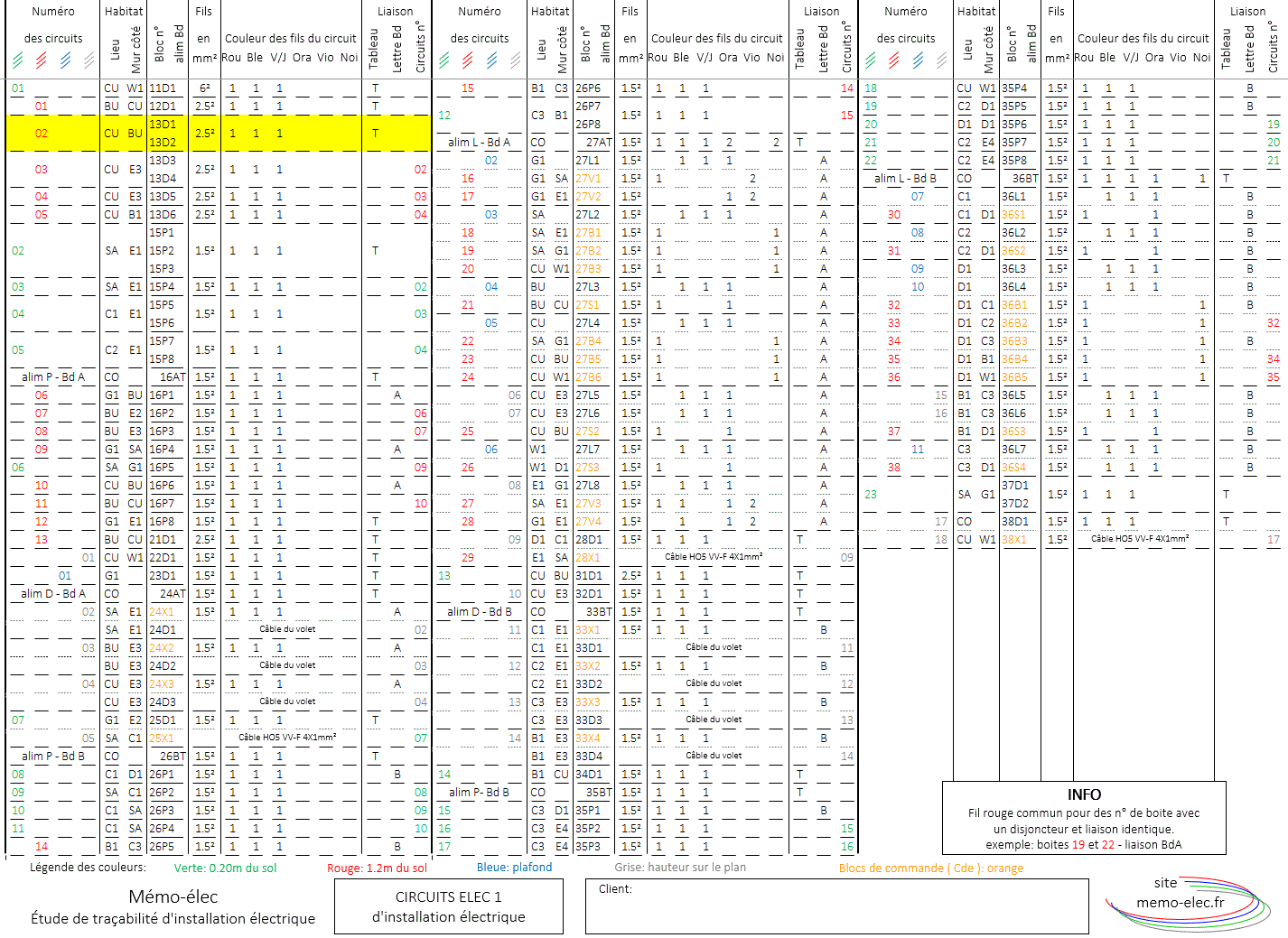 - Blocs: 13D1 et 13D2 - disjoncteur 13 - Circuit destiné, prise double