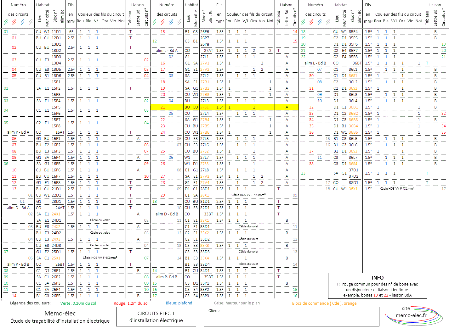 Couleur - Verte: 0.20m du sol - Rouge: 1.20m du sol - Bleue: plafond - Grise: hauteur sur plan