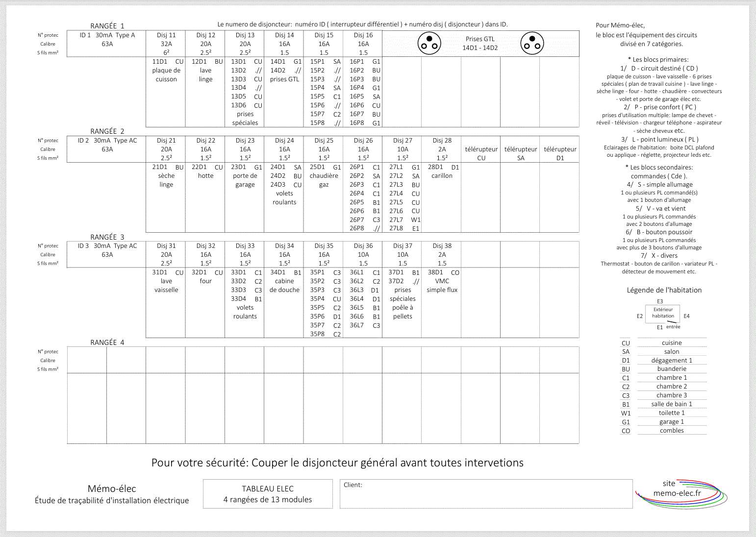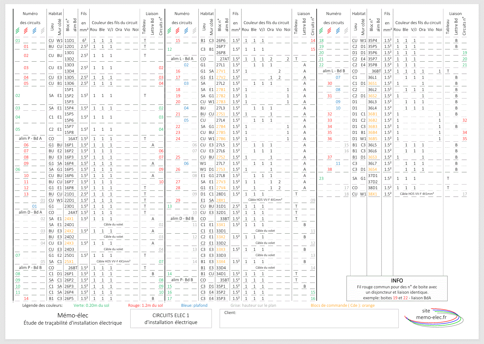 d'une installation électrique du pavillon de l'exemple sur la page RELEVÉ-ÉLEC.